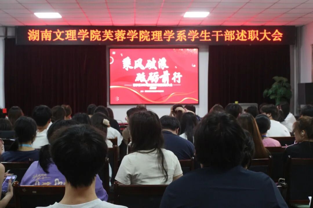 2025年6月23日理学系于图书馆第二会议室展开了本学期第一次述职大会,理学系党总书记唐生斌老师,理学系学工办主任李欢老师,辅导员黄静老师,辅导员宇芳以及全体干部干事齐聚一堂,对本学期的学习工作做总结汇报。
