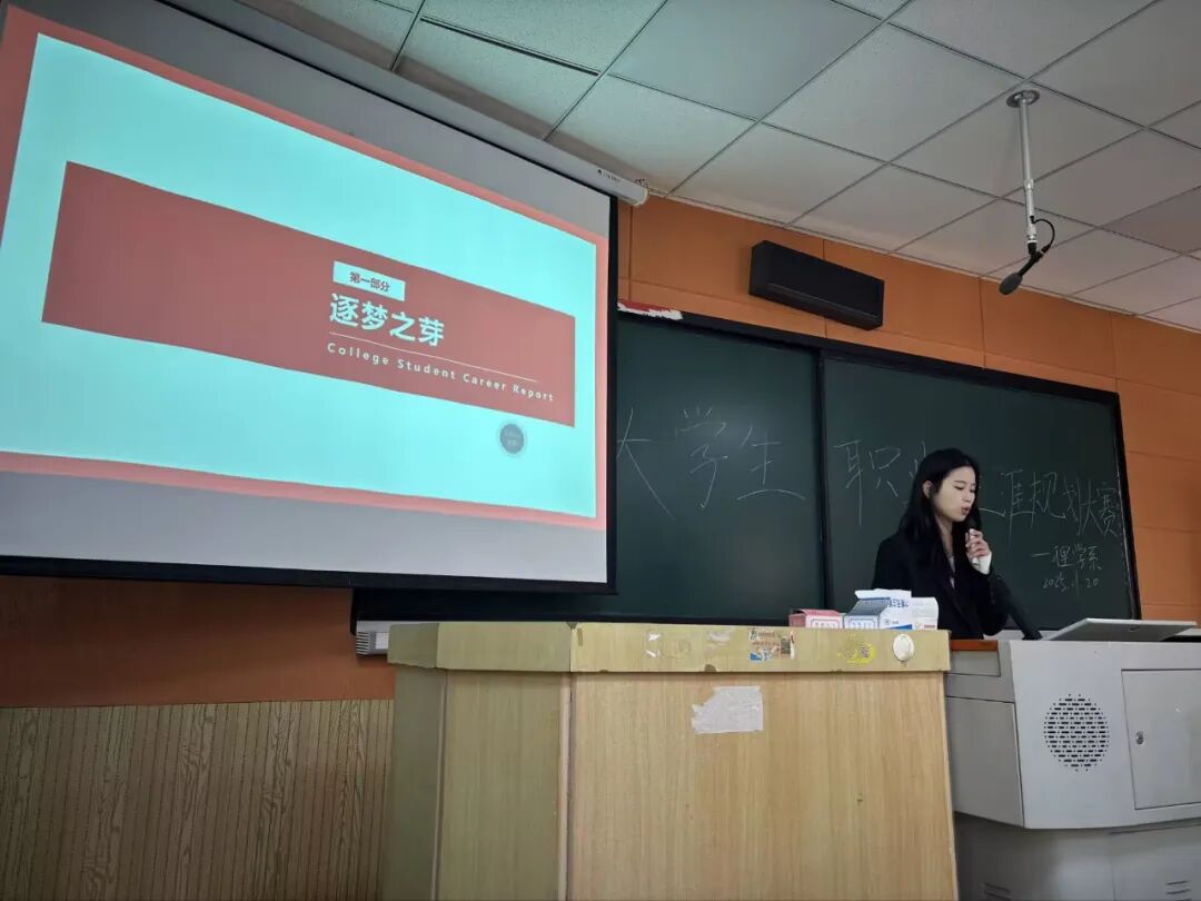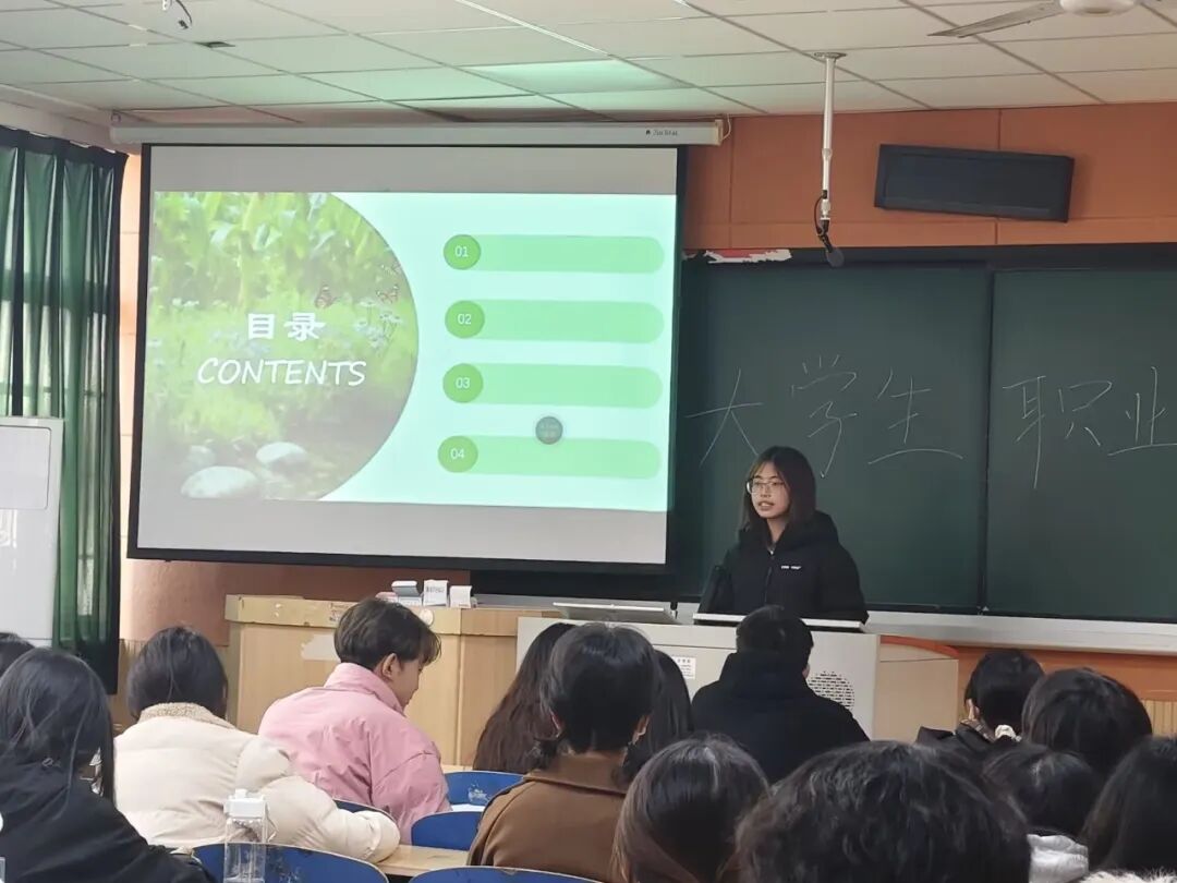 同学们通过将演讲和PPT相结合的形式对自己职业规划进行展示,他们的演讲内容丰赡,气韵昂扬。方寸讲台,尽展当代学子笃学精进、踔厉向上的精神风貌。