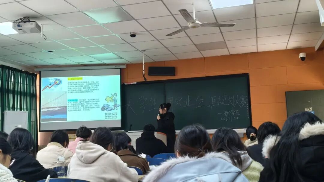 为了让心中的职业理想生根发芽,以正确的职业观与价值观为养分,让每一位同学都能在时光的沉淀里,对未来的职场之路拥有澄澈而明晰的认知。理学系于2025年11月20日中午在T3-B507举办大学生职业规划大赛。本次比赛的评委嘉宾有:理学系学辅导员郭立荣老师,辅导员黄静老师,辅导员何芷君老师以及主席团各成员。
