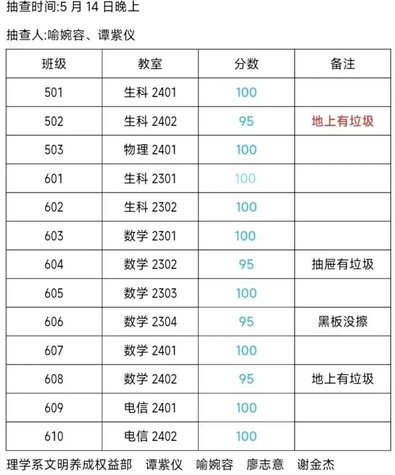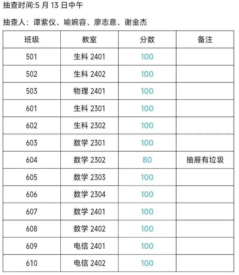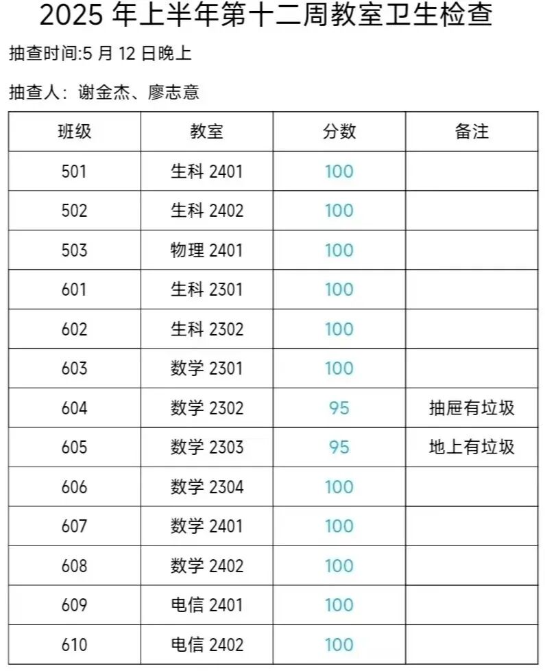 3.教室卫生检查通报