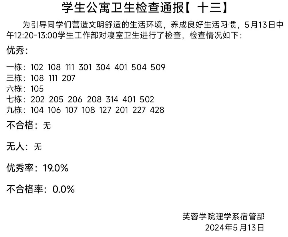 4.寝室卫生检查通报