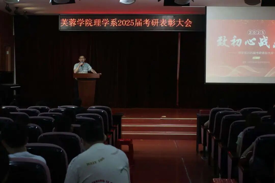 宝剑锋从磨砺出,梅花香自苦寒来。为表彰先进,湖南文理学院芙蓉学院理学系于5月20日在多功能报告厅举办2025年度考研表彰大会,芙蓉学院党委副书记杨家兴、理学系党总支书记唐生斌、理学系主任王先春、理学系专任教师刘明、杨婷、理学系学工办主任李欢、理学系全体辅导员及22级全体学生参会。